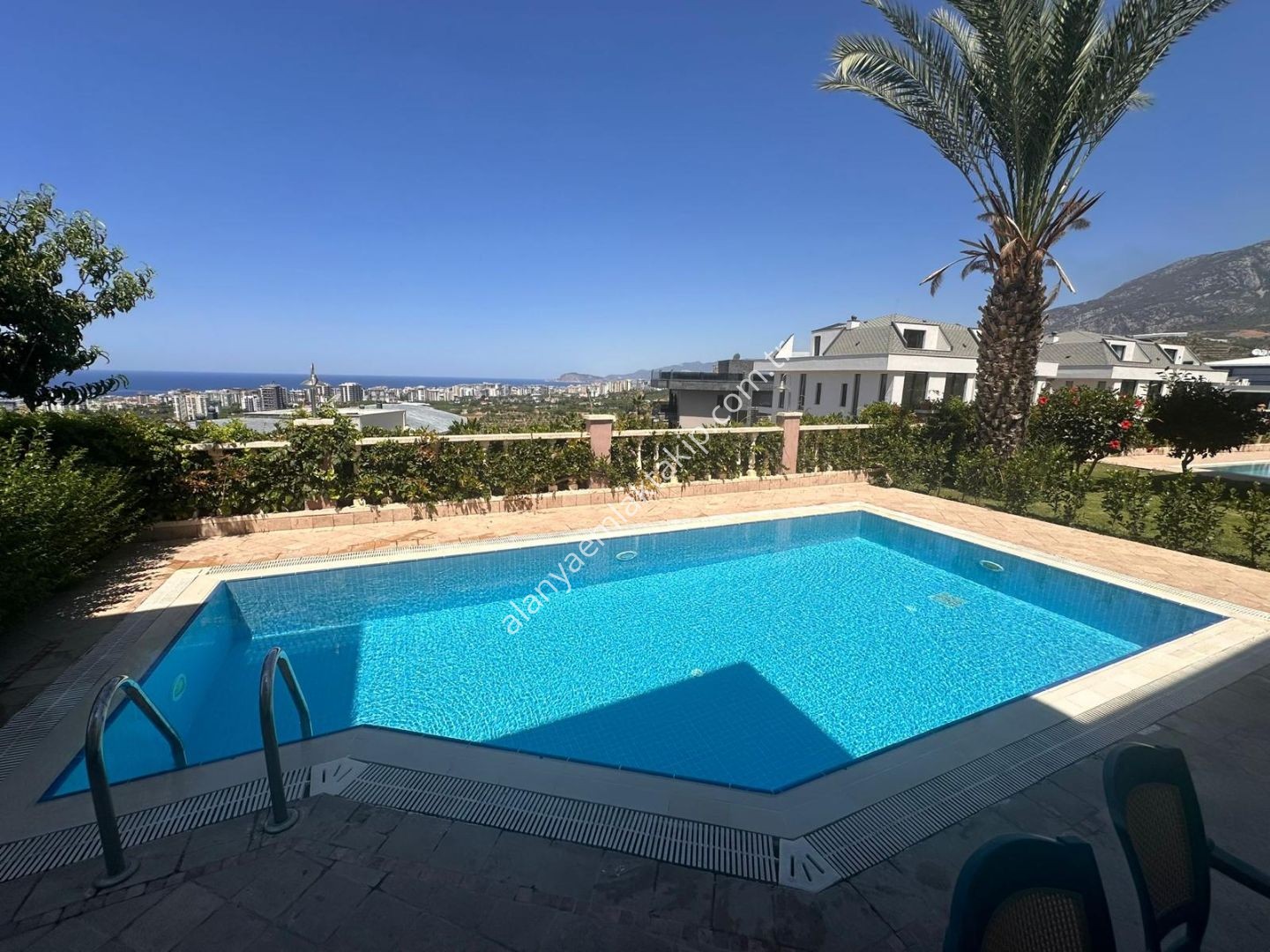 içe konumda bulunan villamız, deniz, Alanya Kalesi ve şehir manzarası ile