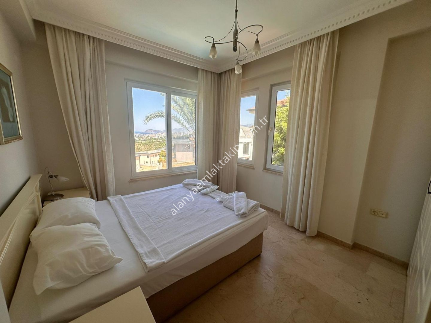 içe konumda bulunan villamız, deniz, Alanya Kalesi ve şehir manzarası ile